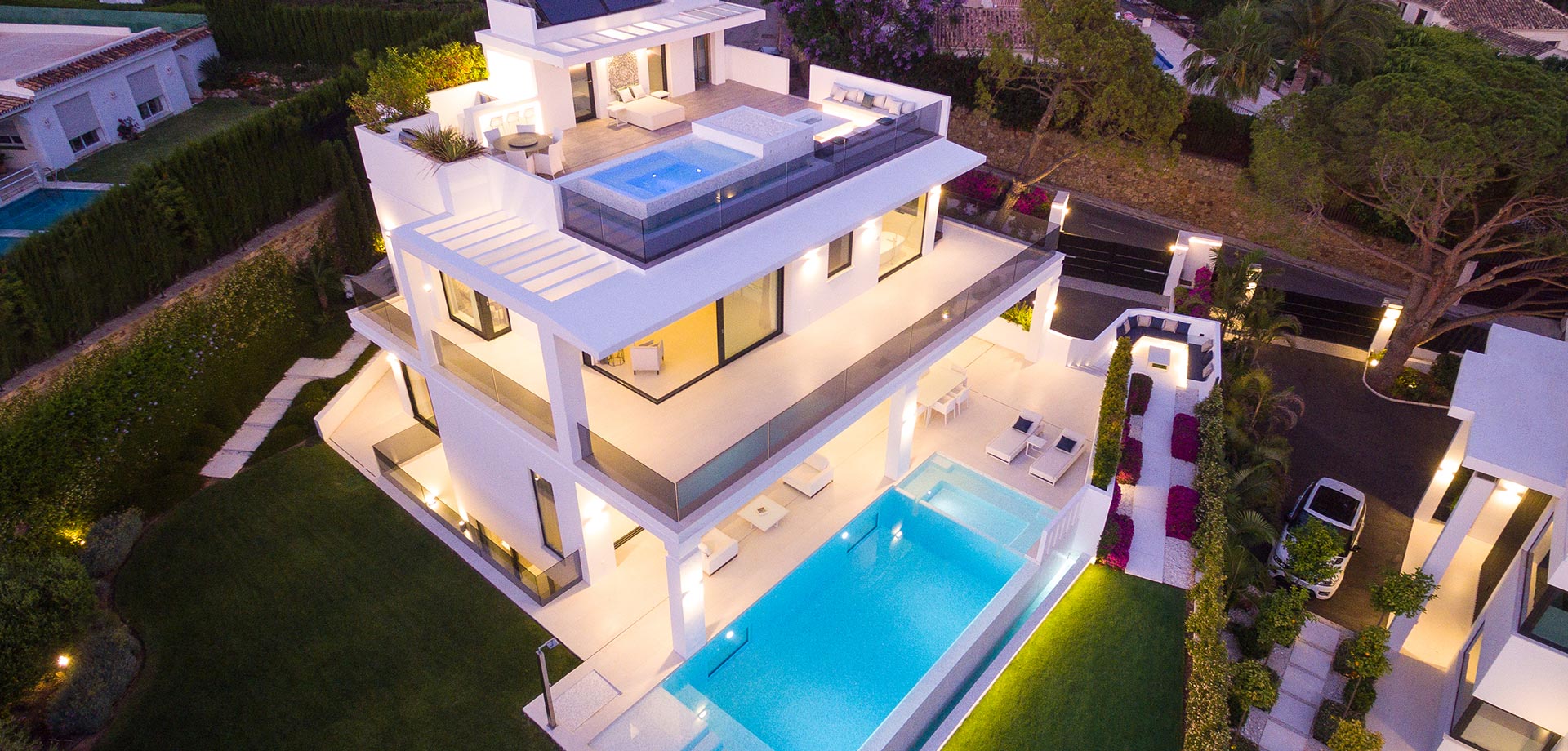 Stunning modern luxury villa in Nagueles, one of the top areas of Marbella Golden Mile, offering easy access to Marbella centre, 10 minutes drive from Puerto Banus. The property is built to highest specifications with great attention to detail and using top quality materials and installations.